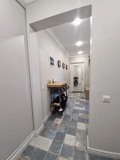 The combined bathroom is equipped with everything you need — including water meters for efficient utility use. The apartment is fully connected to essential communications and offers stable water supply, electricity, and internet access.