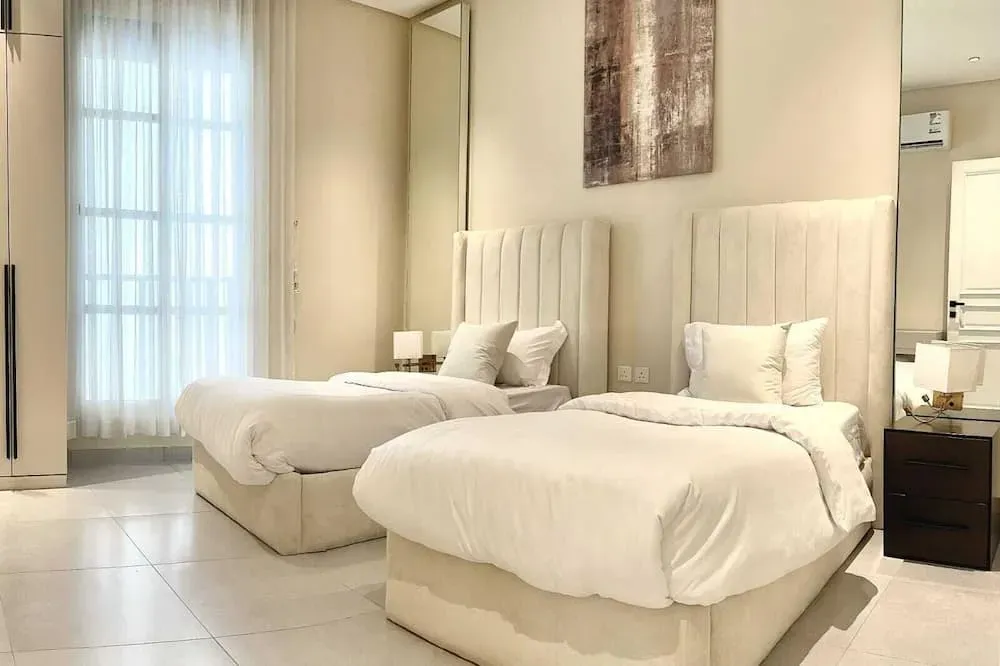 Looking for a comfortable and modern 2 bedroom apartment for rent in Riyadh? This beautifully designed property, located in the heart of Riyadh, Riyadh Region, Saudi Arabia, offers an inviting atmosphere ideal for both short and long stays. The apartment features two well-appointed bedrooms — one with a queen bed and another with a twin bed — along with three stylish bathrooms equipped with bathtubs and essential toiletries. Whether you’re a professional, student, or traveler, this residence offers everything you need for a convenient lifestyle.