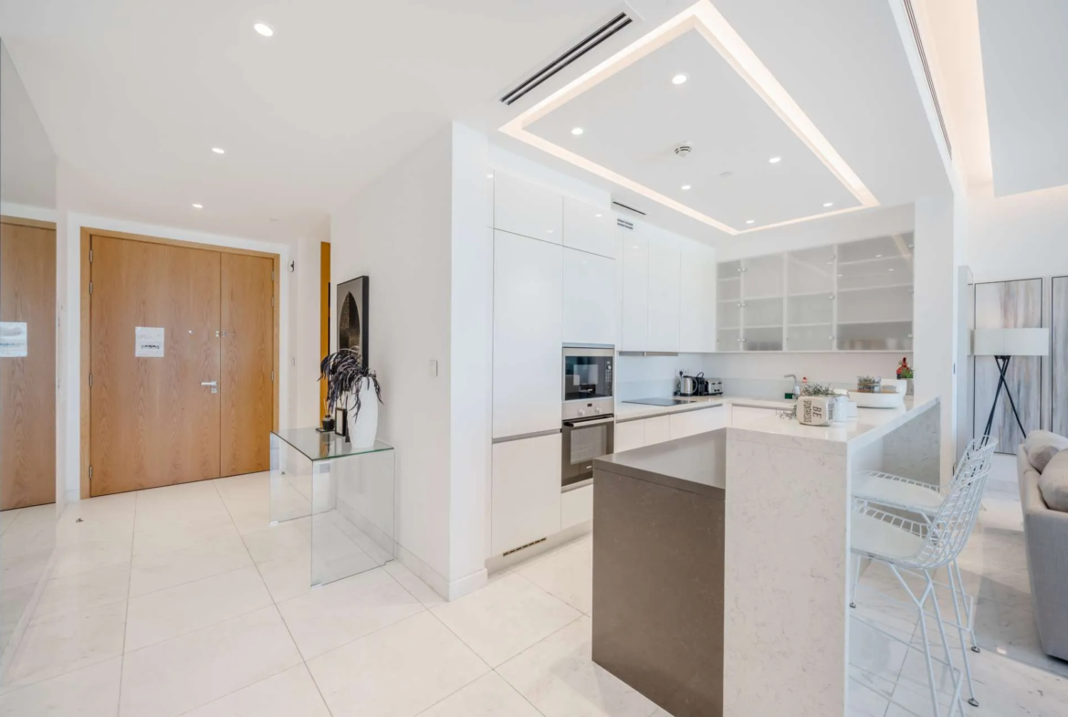 The apartment’s open-plan layout is perfect for entertaining or relaxing. The large balcony provides the ideal spot to enjoy Dubai’s stunning skyline and sunsets. Coupled with premium finishes and fully equipped kitchen appliances, this apartment combines style and comfort effortlessly.