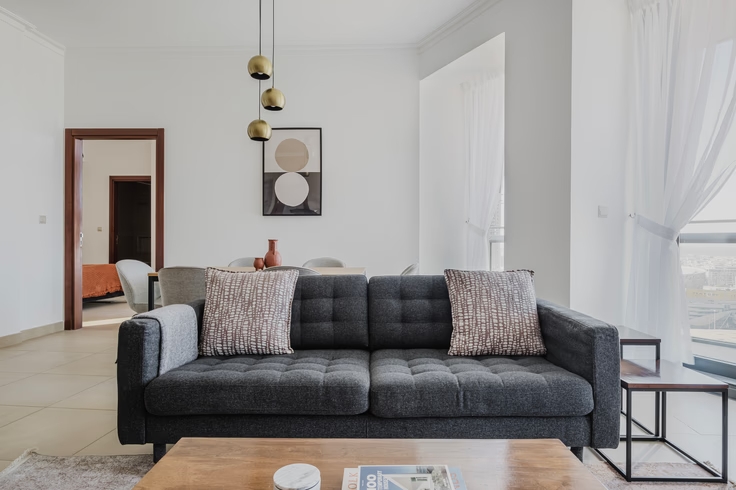 Feel at home from day one in this stylish Burj Vista apartment for rent. The apartment comes fully furnished with modern decor, bespoke finishes, and a fully equipped kitchen that includes a stove, oven, microwave, refrigerator, dishwasher, and Nespresso machine. The bright living area is perfect for relaxing or entertaining, with a wide-screen smart TV, premium wireless speaker, and comfortable seating.