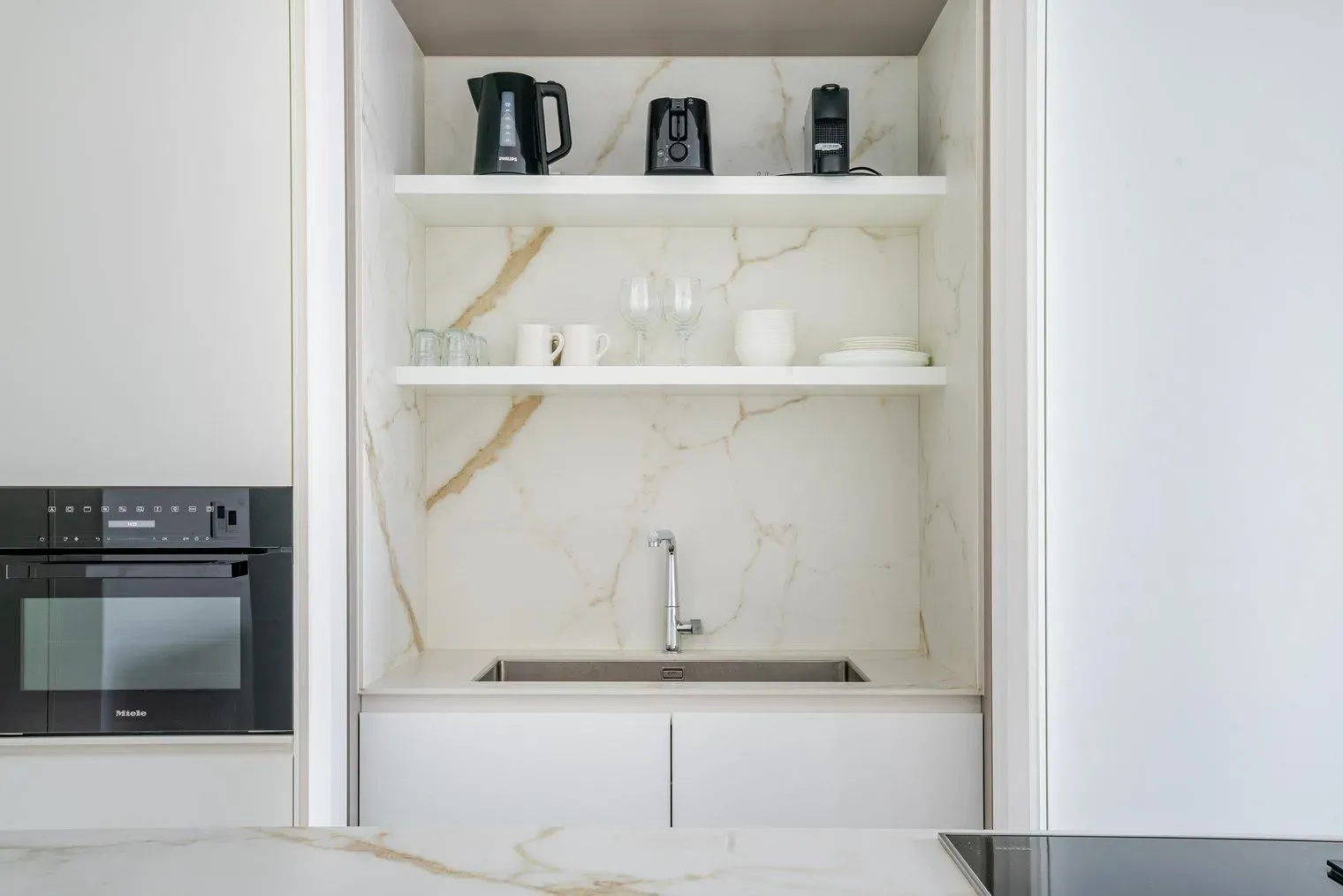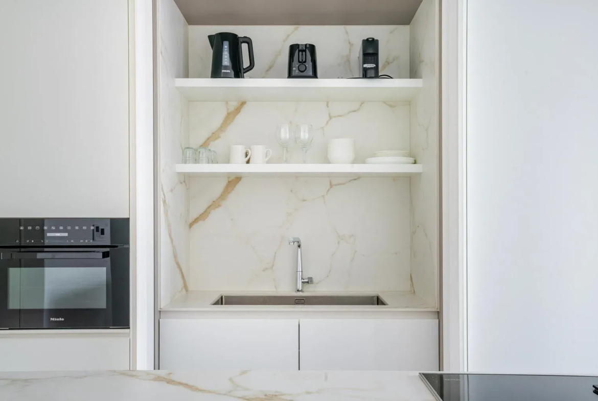 • 🍳 Modern kitchen with premium appliances – oven, refrigerator, microwave, toaster, and kettle