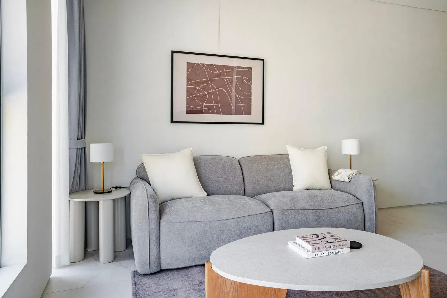 • 🛋 Fully furnished living area with designer furniture and contemporary décor