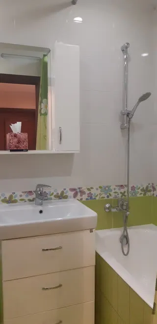 • Bathroom: Combined, with plastic windows and modern fixtures