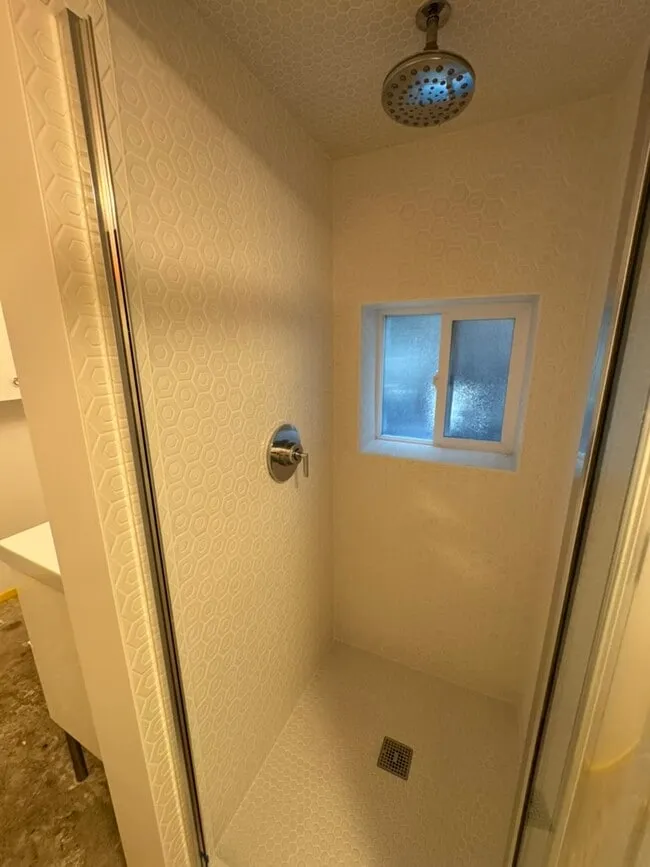Modern Bathroom: Tiled shower with contemporary finishes.