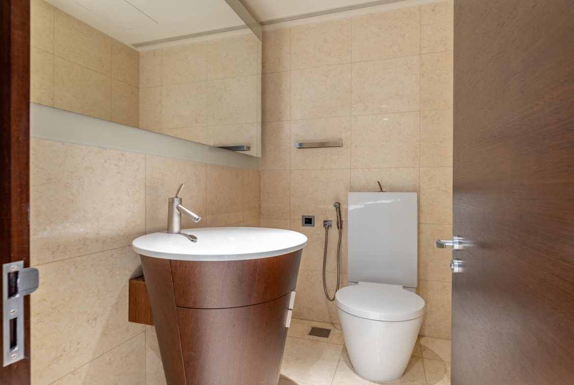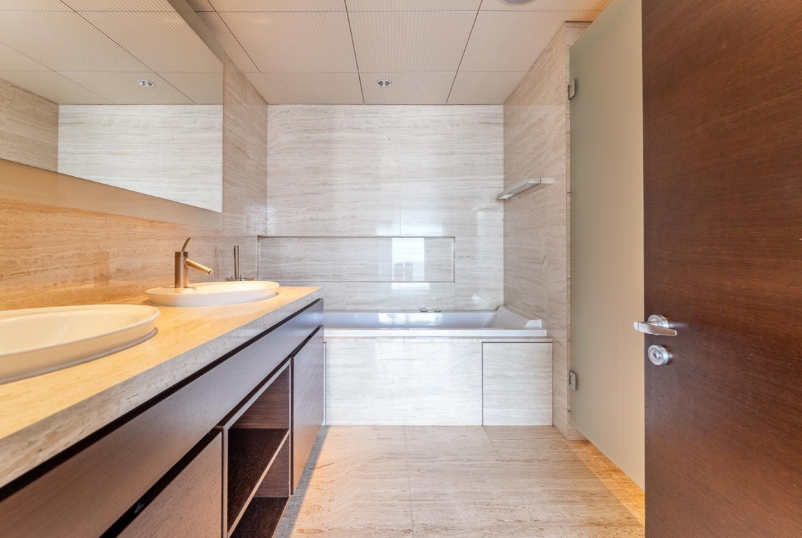 The master bedroom enjoys stunning views of the Dubai Fountain and Downtown Dubai skyline, especially beautiful after dark when the city lights come alive. The finishes throughout are warm, modern, and timeless, creating a home that feels comfortable rather than showy.