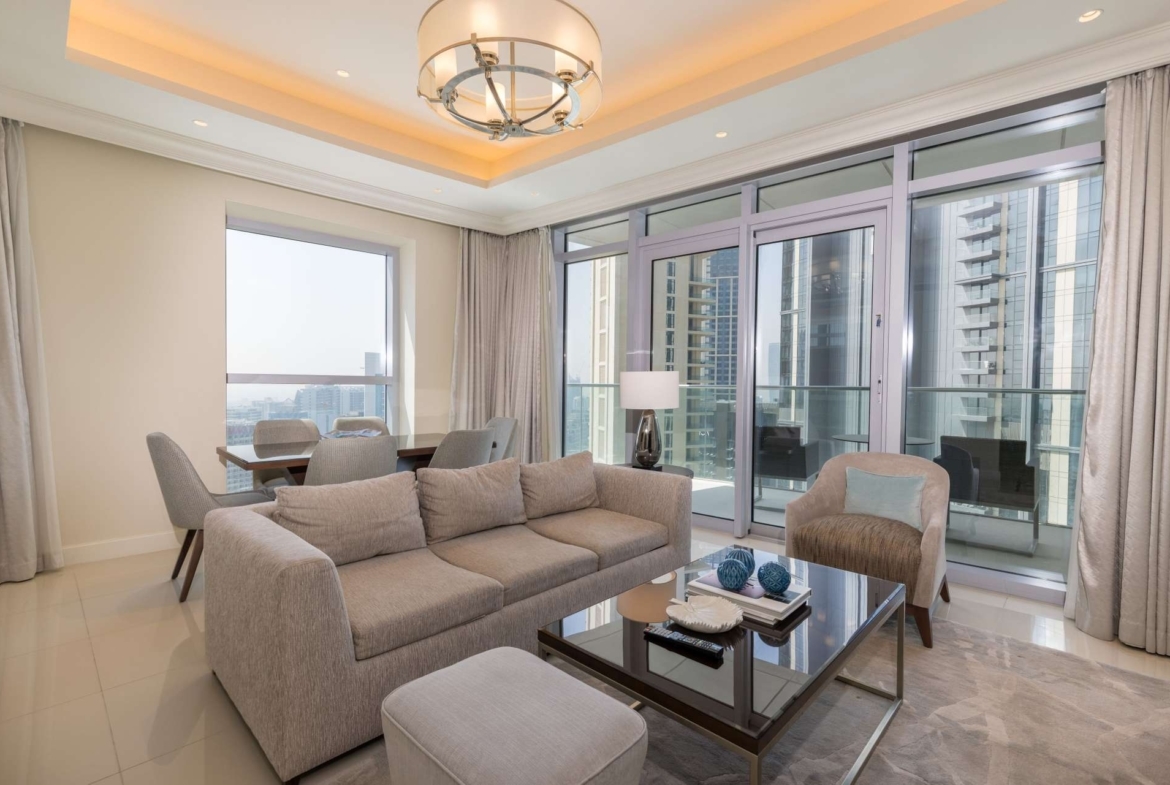 Discover luxury city living with this premium flat for rent in Dubai, located in The Address Residence Fountain Views 2, Downtown Dubai. This fully furnished 2-bedroom apartment offers breathtaking Burj Khalifa views, modern interiors, and an all-inclusive rental experience, perfect for professionals, executives, and families seeking comfort in the heart of the city.
