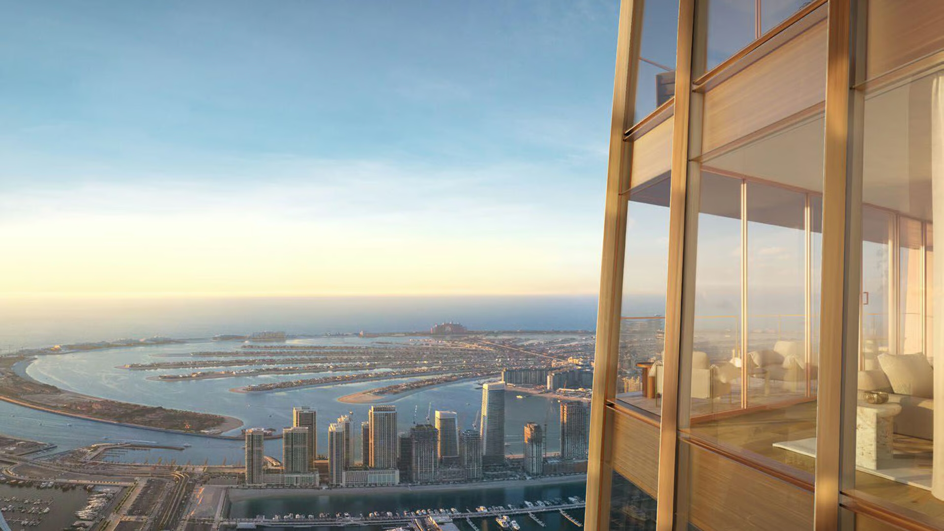 Situated on a high floor (97th level), this expansive 5,713 sq. ft. residence offers breathtaking panoramic views of Palm Jumeirah, the Arabian Gulf, and the glittering Dubai skyline. Floor-to-ceiling windows and a generous balcony seamlessly blend indoor and outdoor spaces, flooding the home with natural light.