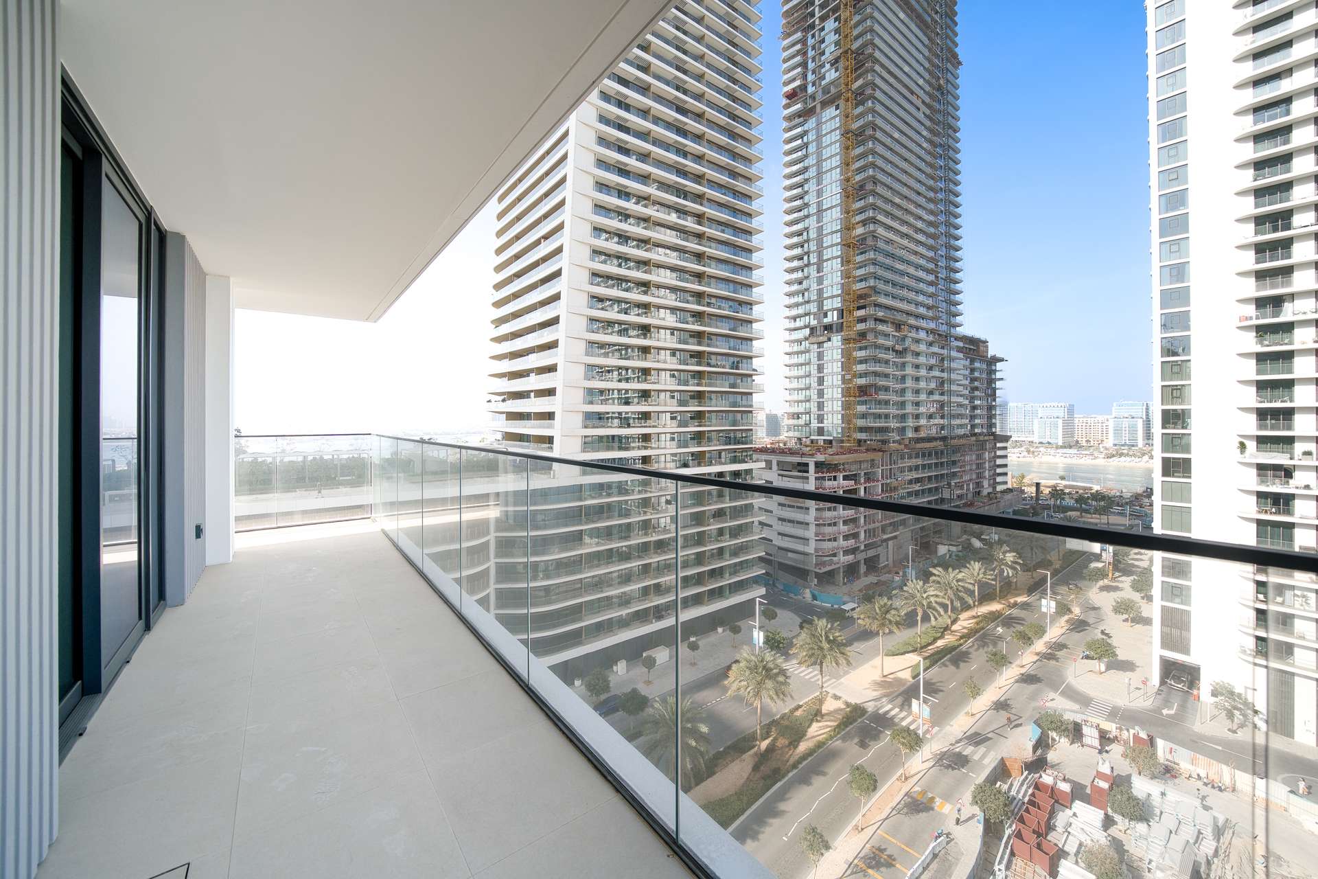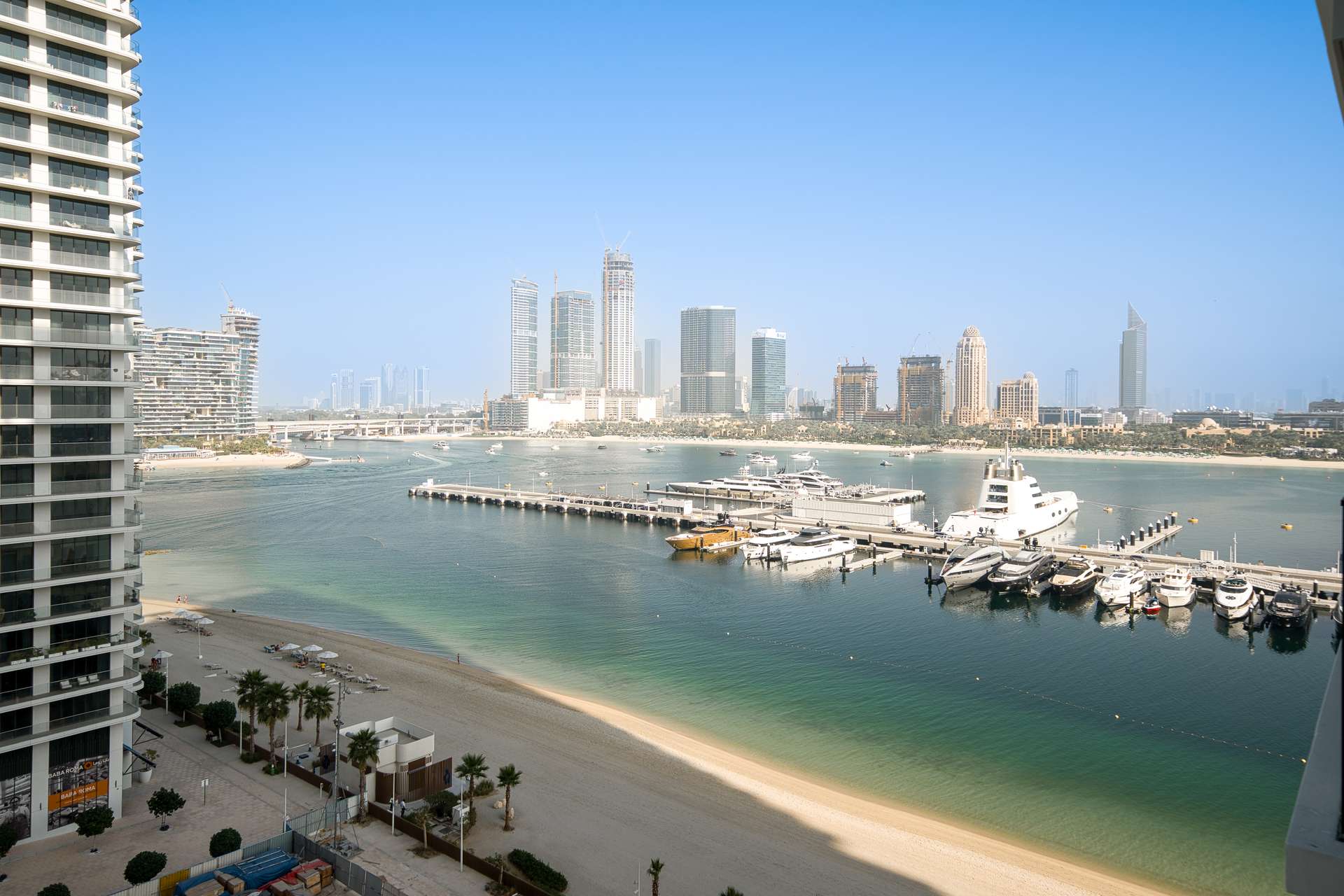 Vacant 2-bedroom apartment in Beach Mansion, Emaar Beachfront with Palm and Dubai Harbour views, beach access, balcony, pool, gym, and parking.