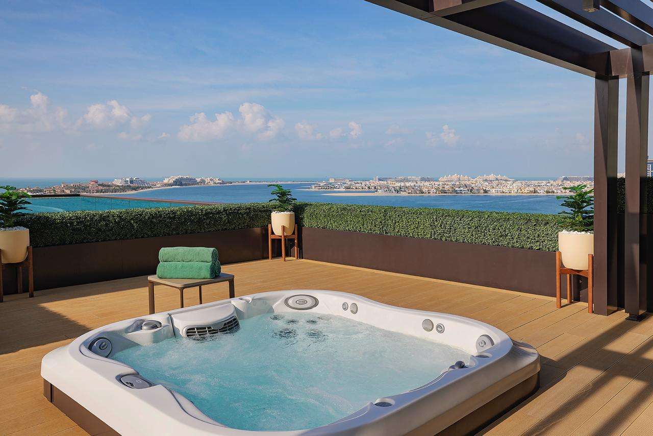 Discover the pinnacle of luxury living with this stunning penthouse to rent in Palm Jumeirah, located in the prestigious Marriott Resort Palm Jumeirah, Dubai, United Arab Emirates. This exquisite 2-bedroom, 3-bathroom fully furnished penthouse spans an impressive 10,439 sq ft., including expansive terrace areas, offering unparalleled space and privacy on one of Dubai’s most iconic man-made islands.