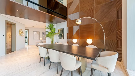 Designed for comfort and sophistication, the penthouse features a modern, fully equipped kitchen, expansive living and dining spaces, five elegant bathrooms, and a private pool with a large terrace, ideal for entertaining or relaxing while overlooking Dubai’s iconic skyline.