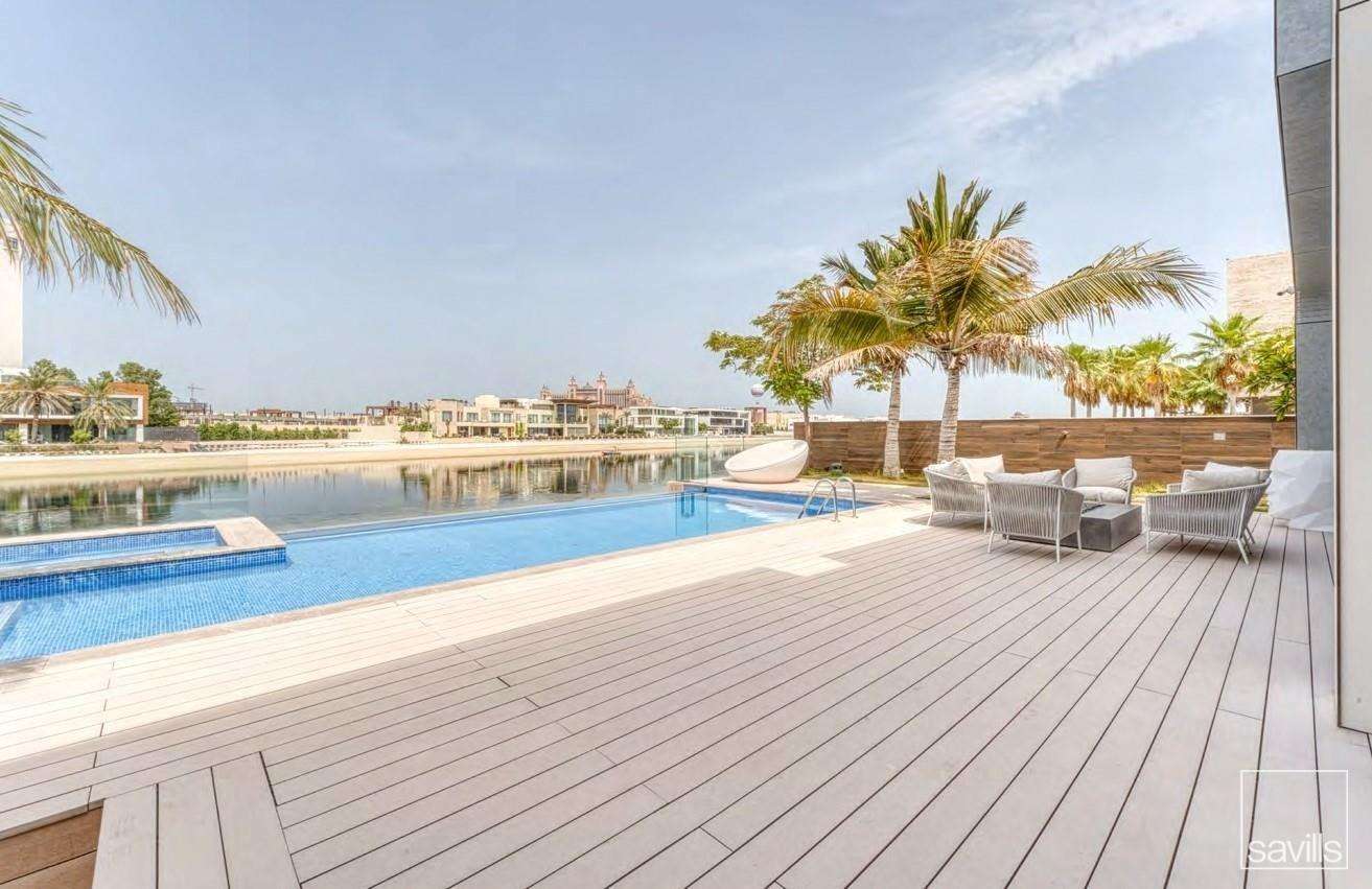 Experience elite beachfront living with this custom-built 6-bedroom villa for rent in Dubai, located in the prestigious Palm Jumeirah Signature Villas, Frond G. This extraordinary mansion sits on a 9,729 sq. ft. plot. It offers uninterrupted views of Atlantis, direct beach access, and four levels of refined luxury.