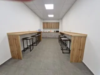 The building also includes a meeting room, ideal for client presentations, team meetings, and collaborations.