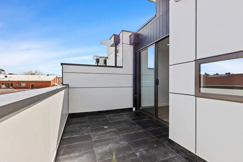 The townhouse offers two comfortable bedrooms with built-in robes and split-system heating/cooling, ensuring year-round comfort. The stylish central bathroom is fitted with premium fixtures, reflecting the property’s sleek design.